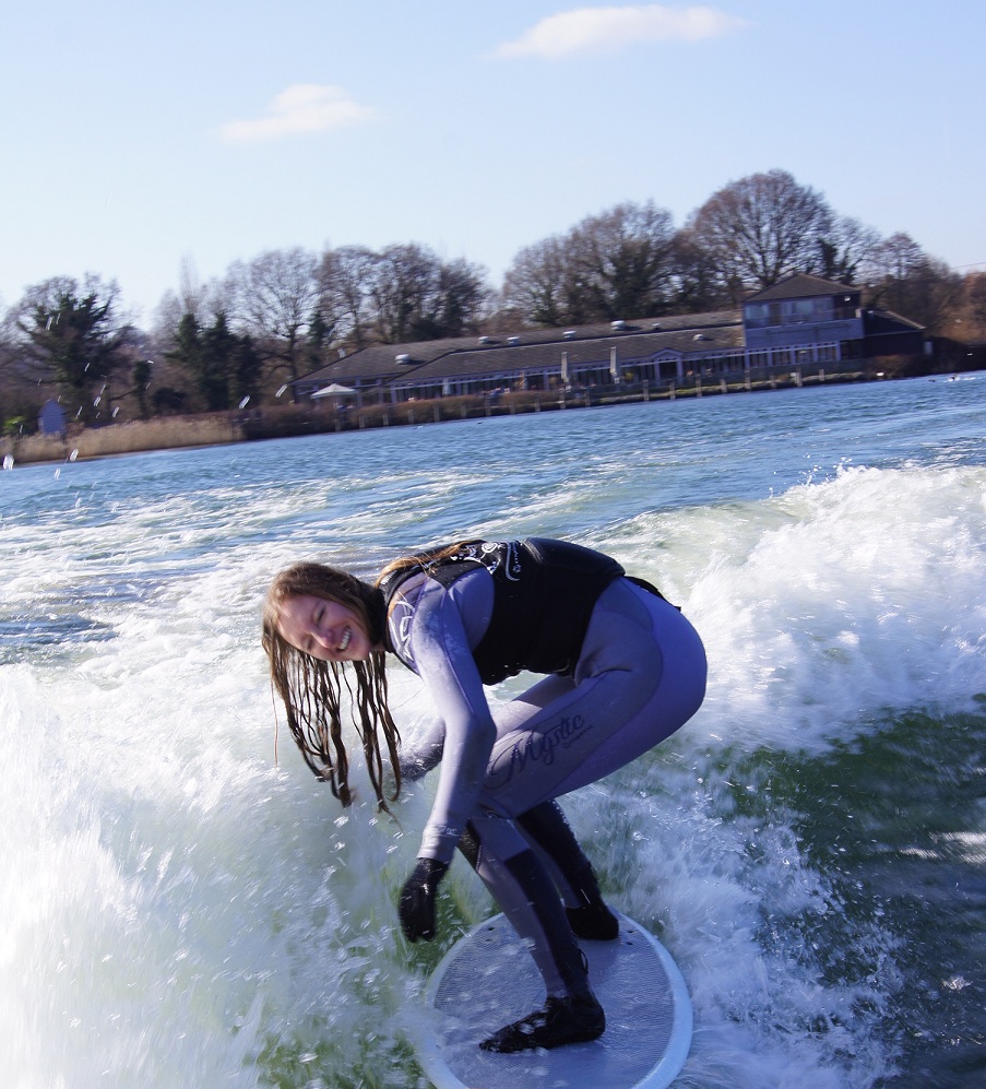 For those of you who are not familiar with wake surfing: its surfing on the wave (or wake) created by a wakeboard boat. You use a specially designed short surf board which you get up on using a rope in the same way you would if you were wakeskating as there are no bindings. The aim of the game is to find the sweet spot on the wave and drop the rope so you can surf freely as if surfing a wave in the ocean. SO much fun!