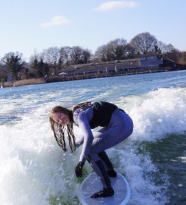 By the end of my session I was trying to get a cutback and was also trying to get enough speed to get some air, I didn’t manage this… next time! I could pump the wave and got a little re-entry, and stacked it a fair amount too!! It was so refreshing to try something new and have to adapt to a new kind of board. I haven’t felt that stoked in a while, you know when you can’t stop smiling and are kinda light headed from so much adrenaline going round your body? Needless to say, I will definitely be heading back to the Quays for more. 🙂