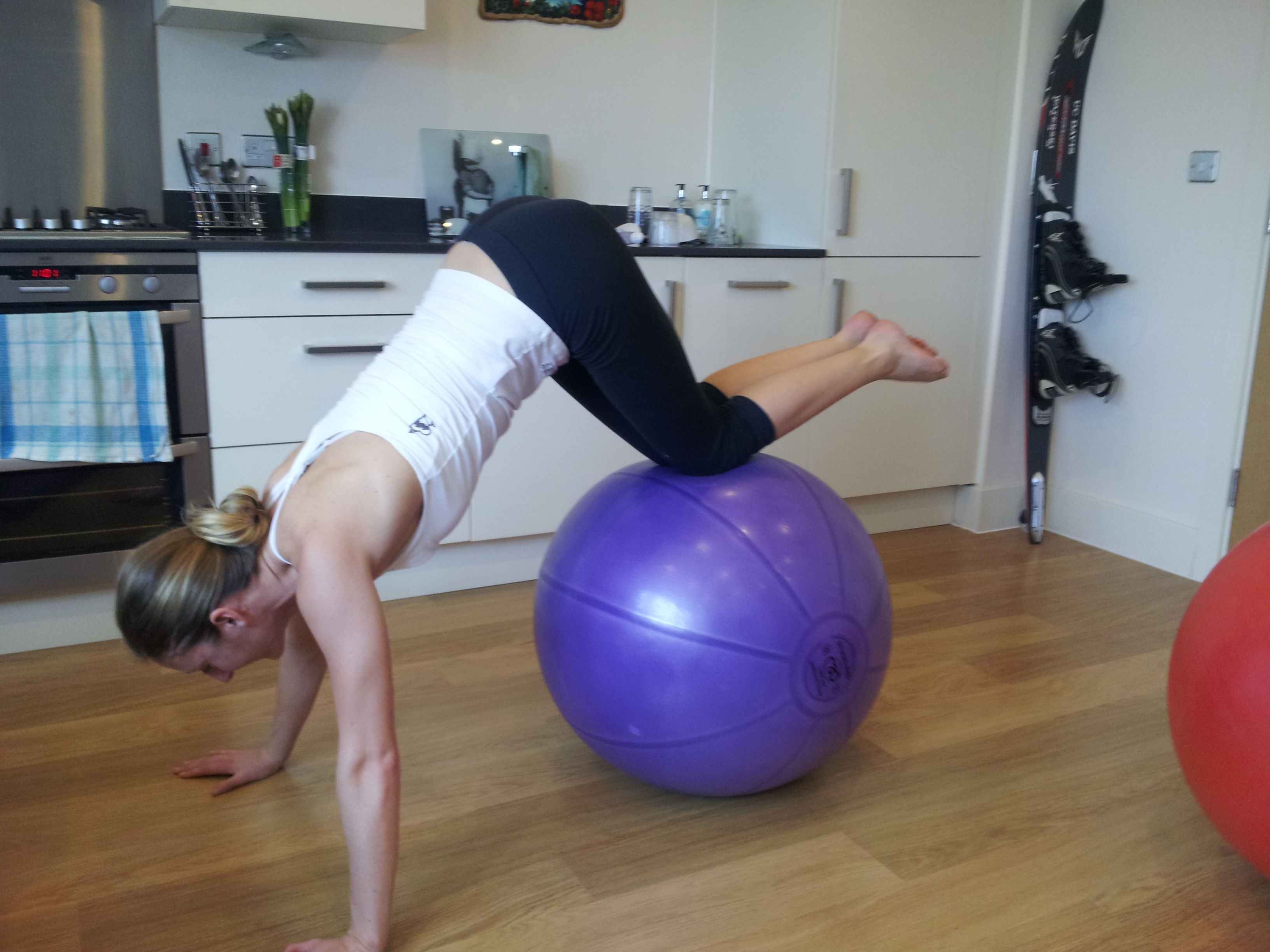 I had my first PT session since my assessment and it was all focussed around an exercise ball! Sharm had devised a work out for me that I could do in my apartment. This is beneficial for me because – 1) I’m not a member of a gym 2) I can’t get on the water everyday 3) I don’t have to leave home which is great when you just don’t feel like heading out! Every exercise was with the ball, arms, core, back, stomach, legs, butt… you name it! Sharm pushed me hard as usual. I couldn’t complete everything she challenged me too, but I managed to nail a few new things which made me happy. Its so good to feel myself improving and getting stronger every session 🙂