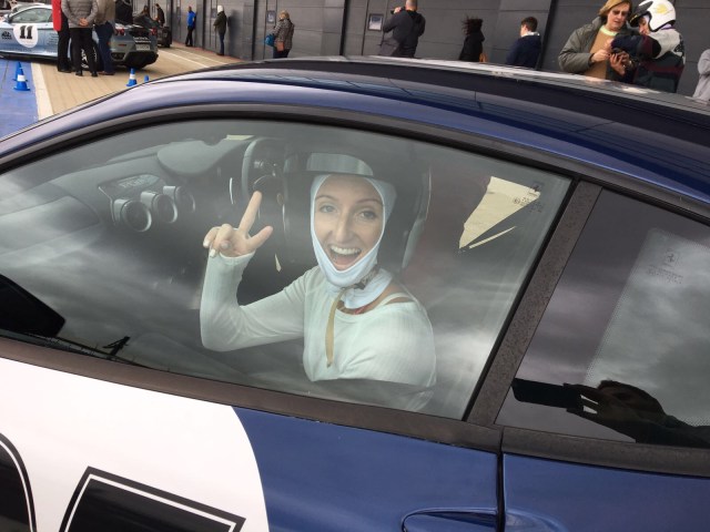 I got shown to ‘my’ Ferrari, I don’t know what it was… but it was a shiny and blue and beautiful. I know, such a girl. The first lap I was in the passenger seat while the instructor drove me round the course. He went fast! I had the biggest grin on my face the whole time. Then it was my turn. In my first stint, I had four laps to burn some rubber and get to grip with the corners and the gear paddles. I was definitely a tad messy as obviously its completely different to how I drive on the road (as I always have two small children in my car and I drive super responsibly, of course).